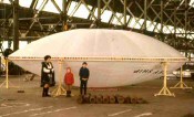 Alas, the flying trials were not particularly successful. The model could not be controlled as well as had been hoped. Too late we realised that the fluorescent lighting in the Cardington shed was probably interfering with the radio control, at one time causing the airship to rise far too high. We were displeased when the “Telegraph” published unflattering remarks about control of the craft, especially as their own reporter had caused the model to nose-dive by treading on a restraint line!