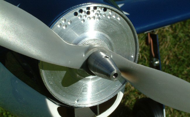 The cast spinner required a lot of metal to be removed to achieve a balanced condition. | The spinner back plate was separately balanced. As can be seen, a surprising amount of balancing was required considering it was a turned component. Also seen here is the custom-made prop nut. |