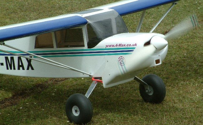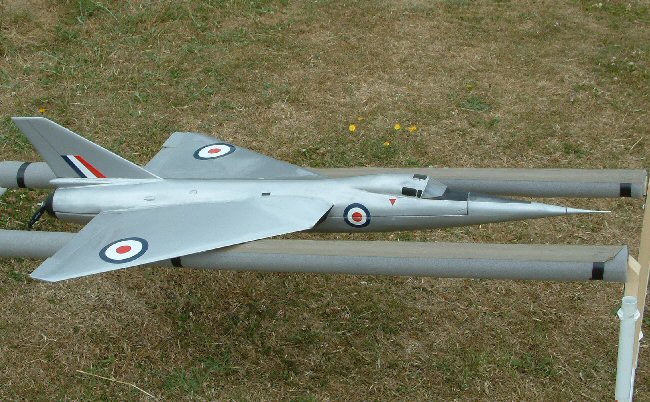 | This electric RC Tigercat gets safely away from a perfect hand launch. | This small, fast model needs a bungee launch to get safely airborne. |