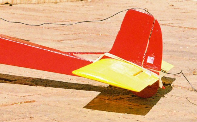 I also programmed my JR transmitter with plenty of exponential on rudder, as I realized that the large amount of dihedral in the wings which is as per the Veron plan, was intended for free flight, not radio control. In electrifying the Cardinal I had only beefed up the wing by adding 1/16 center section sheeting and an added rear spar to accommodate the extra RC loads.
